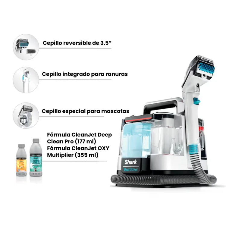 Su potencia de succión y fórmulas activas eliminan manchas, olores y residuos sin dañar las telas.