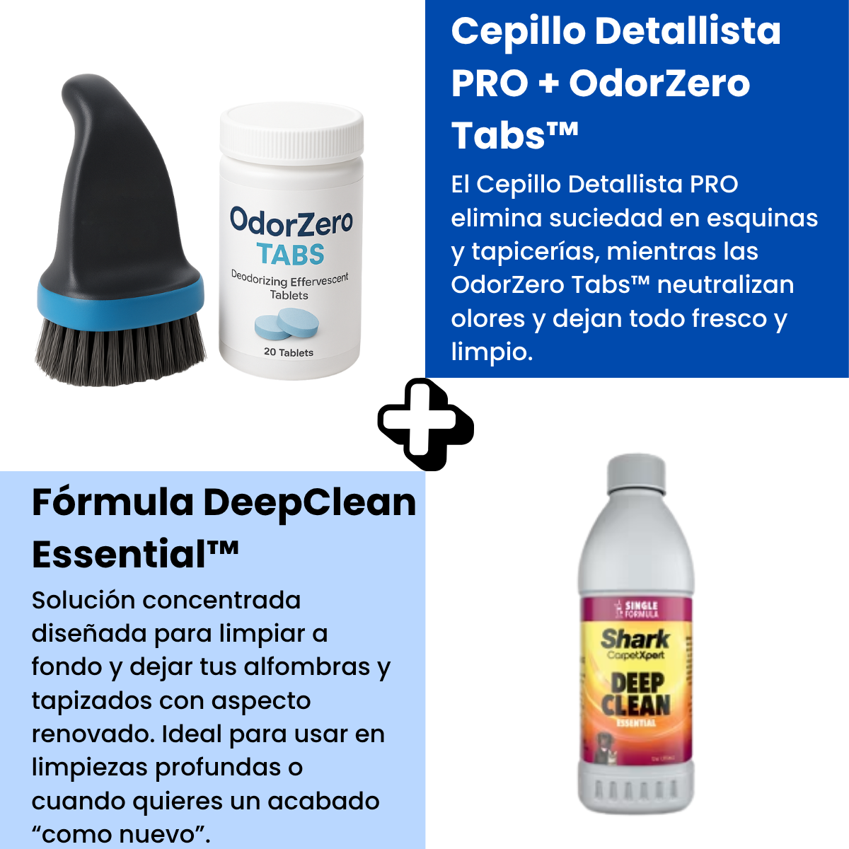 Por la compra de tu DeepClean™, recibe totalmente gratis el Cepillo Detallista PRO, las OdorZero Tabs™ y la Fórmula DeepClean Essential™.